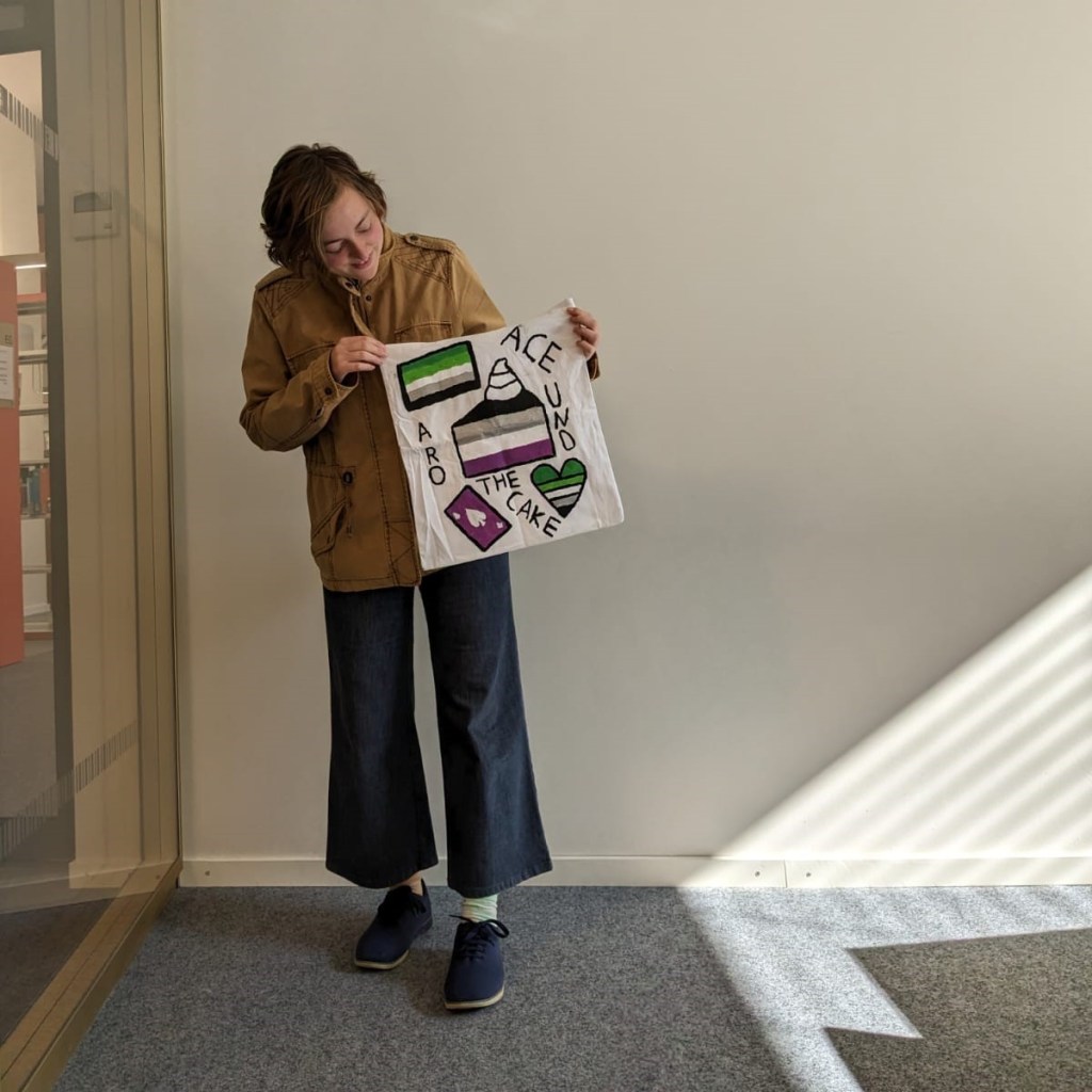 Lotta (en/they) hört viel klassische Minimalmusic und spielt Gitarre, Kontrabass und Klavier. Außerdem trägt they immer bunte Socken, auch beim Rollerdancing. Abgesehen von ACE AROund the Cake beschäftigt en sich sowohl in ens Freizeit als auch im Studium mit Sprachen und A*sein. Wenn Lotta nicht gerade an einer neuen Podcastfolge arbeitet, häkelt oder sich an einer eigenen musikalischen Komposition versucht, studiert en Vergleichende Sprachwissenschaft und Gender Studies. Leider werden A*Themen in diesem Studienfach nur äußerst selten berücksichtigt und deshalb ist es them wichtig, auch immer wieder eine A*Perspektive einzubringen.
